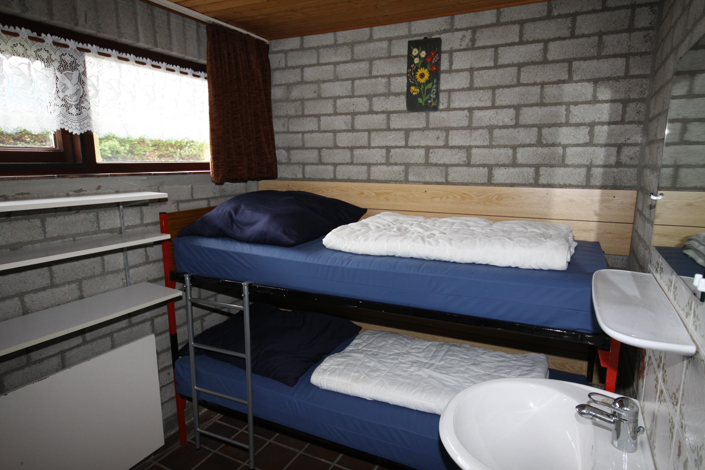 Bettgrösse: zweimal 0,80 X 2,00 Meter und der Raum verfügt zusätzlich über eine Waschgelegenheit und einen Safe.